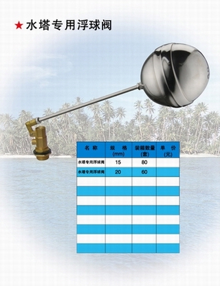 浮球閥選型【我們致力于把浮球閥做到最好!】浮球閥工作原理:浮球始終都要漂在水上,當水面上漲時,浮球也跟著上升。球上升就帶動連桿也上升。連桿與另一端的閥門相連,當上升到一定位置時,連桿支起橡膠活塞墊,封閉水源。當水位下降時,浮球也下降,連干又帶動活塞墊開啟。