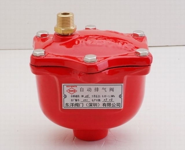 自動排氣閥為自動噴水滅火系統中的濕式、干濕交替、預作用、循環、泡沫噴淋、泡沫儲罐等消防系統所特制。安裝于系統頂端,在系統充水排氣時,以防止氣堵、氣塞。充滿水后,它自動關閉出氣口;在系統維護放水時,自動開啟吸氣,以防止管網負壓變形、損壞。