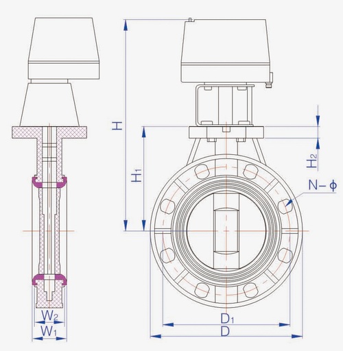 D971X-10S塑料PVC電動蝶閥手動功能:電動執行器帶有手動開閥、關閥功能。