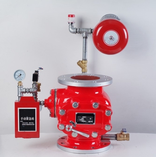 ZSFG雨淋閥裝置屬杠桿結構,具有防復功能,符號GB5135.5-2003標準的產品。雨淋閥裝置廣泛用于式系統(系統側管上為開式噴頭),如雨淋系統,水幕系統和水霧系統。雨淋閥裝置的開啟,是將雨淋閥膜片室內的壓力釋放,利用供水側壓力將閥瓣打開。膜片室內壓力釋放可采用多種方式進行,即電氣引導方式,濕式引導方式和干式引導方式。
