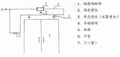 圖中手動(dòng)球閥是當(dāng)火災(zāi)發(fā)生時(shí),溫升未及感溫元件動(dòng)作時(shí),由人工手動(dòng)緊急開(kāi)啟之用。手動(dòng)球閥暗裝在圈內(nèi),并有適當(dāng)保護(hù)裝置,以免任意開(kāi)動(dòng)而造成誤噴。